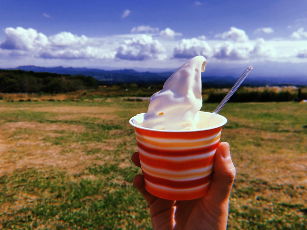 久住高原にある「ガンジー牧場」のソフトクリーム。これね、ぜひ「ヨーグルトソフトクリーム」を召し上がって! めっちゃくちゃ美味いから。