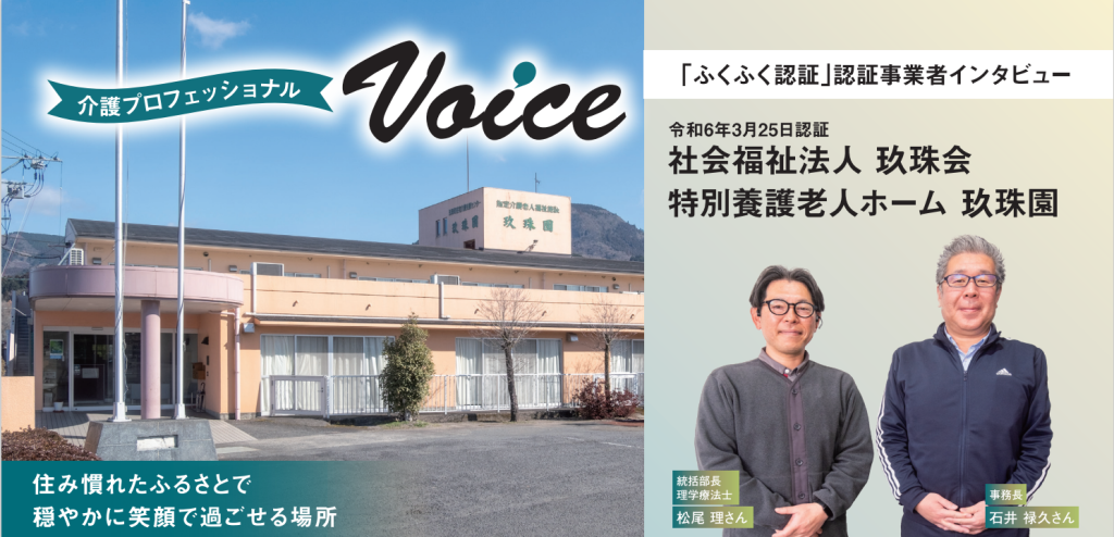 トピックス詳細 2025-03-26 「ふくふく認証」認証事業者のインタビュー記事を追加しました! 「ふくふく認証」認証事業者の社会福祉法人 玖珠会 玖珠園 様を取材しました。インタビュー記事はこちら↓からご覧ください! PDFファイルを見る 一覧に戻る